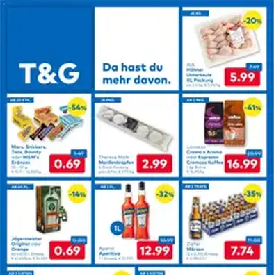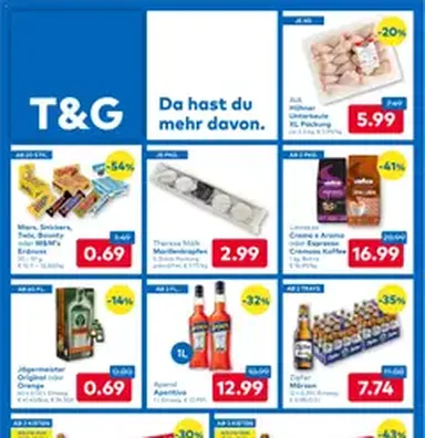 Wissen Sie, was Sie in den nächsten Tagen kochen werden? Dann ist es der richtige Zeitpunkt, einkaufen zu gehen. Verpassen Sie aber zunächst nicht den aktuellen T&G-Prospekt mit interessanten Angeboten für Ihre Lieblingsprodukte.